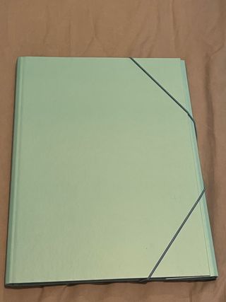 Carpeta de color verde menta con cierre elástico. - Incluye hojas en su interior.