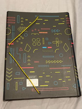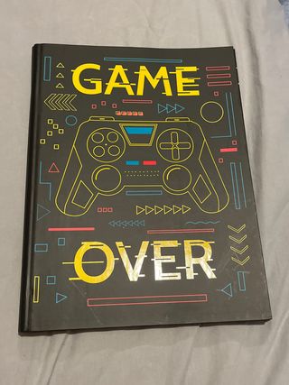 Carpeta negra con diseño inspirado en videojuegos. Ideal para organizar apuntes o documentos. - Diseño Game Over con mandos y elementos gráficos. - Incluye hojas en su interior.