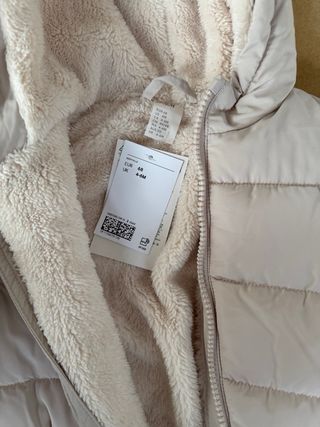 Abrigo de bebé H&M, perfecto para mantener a los más pequeños abrigados. Es un buzo acolchado con un suave forro interior de pelo. - Diseño con capucha y orejitas. - Cierre frontal con cremallera. - Color beige neutro. T