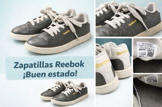 Zapatillas deportivas Reebok para niño en talla 32. Se encuentran en buen estado. - Color gris con detalles en blanco. - Cierre con cordones. - Suela de goma.