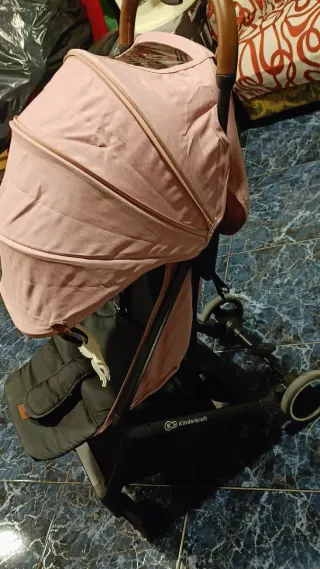 Silla de paseo Kinderkraft en color rosa, ideal para transportar a los más pequeños. - Capota extensible. - Empuñadura de polipiel. - Cesta de almacenamiento. - Ruedas todoterreno.