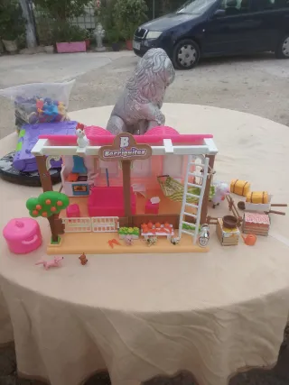Casa de muñecas de la marca Barriguitas, con accesorios. - Incluye figuras de animales y muebles. - Casa de dos plantas con hamaca y escalera. - Accesorios de cocina y jardín.
