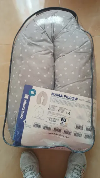 Cojín de lactancia Kikkaboo con un diseño de lunares blancos sobre fondo gris. Viene en su funda original. - Diseño de lunares. - Color gris. - Incluye funda.