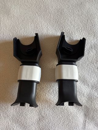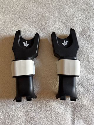 Se venden dos adaptadores Bugaboo para silla de coche. Son de color negro y blanco, y están en buen estado. Usados solo un par de veces. - Incluyen dos piezas. - Perfectos para fijar la silla de coche al chasis del cochecito.
