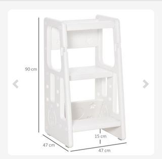 Torre de aprendizaje de color blanco, ideal para que los más pequeños alcancen la encimera de la cocina o el lavabo. - Altura total: 90 cm. - Ancho: 47 cm. - Profundidad: 47 cm. - Altura del escalón: 15 cm.