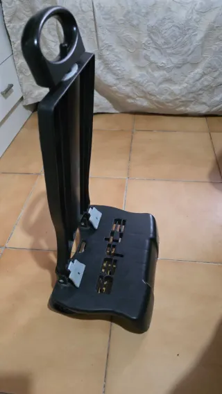 Este carro está fabricado en España para Safta. Con ruedas . Se puede plegar plegar y abrir gracias a una bisagra de seguridad. El asa es extensible hasta 3 alturas mediante su pulsador. El sistema de sujección permite mochilas de hasta 44 x 32 x 16 cm. - Diseño compacto y fácil de guardar. - Asa superior para transporte.
