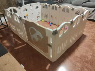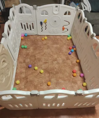 Parque de juegos para bebés, ideal para crear un espacio seguro y divertido. - Dimensiones: 150x150x60 cm. - Material: Plástico resistente. - Diseño con paneles de seguridad. - Incluye juguetes interactivos.