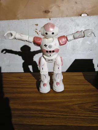 Robot de juguete con un diseño moderno y divertido. Sus colores blanco y rosa le dan un toque especial.necesita cargador - Brazos articulados. - Detalles en color rosa brillante. - Base estable para mantenerse de pie.