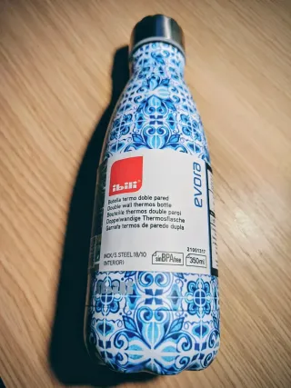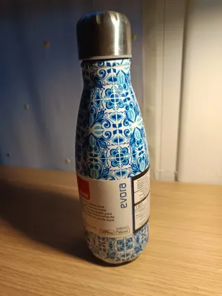 Termo reutilizable con un diseño inspirado en azulejos portugueses. - Capacidad: 350 ml. - Color: Azul y blanco. - Material: Acero inoxidable. - Libre de BPA.