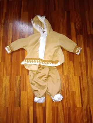 Conjunto de disfraz de esquimal para bebé. - Chaqueta con capucha y detalles de pelo sintético. - Pantalón a juego con puños de pelo sintético. - Adornos dorados en mangas y cintura de la chaqueta.