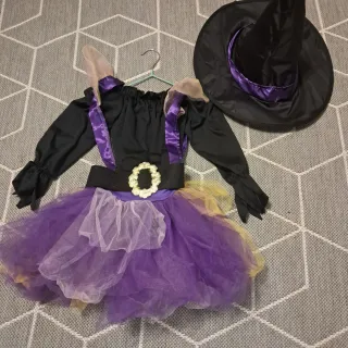 Disfraz de bruja con tutú, tirantes y cinturón. Incluye sombrero. - Talla: 5-6 años. - Diseño de bruja. - Incluye sombrero.