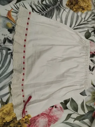 Preciosa falda interior con detalles de encaje y un lazo. - Ribete de encaje festoneado. - Cinta de raso roja. - Cintura elástica.