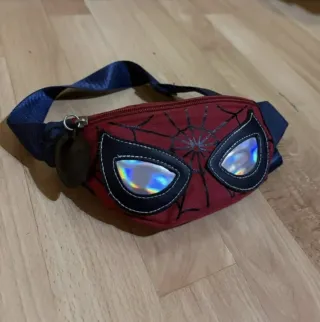 Riñonera con diseño de Spiderman para niños. - Color rojo con detalles negros y plateados. - Estampado de telaraña. - Ojos reflectantes. - Correa ajustable.