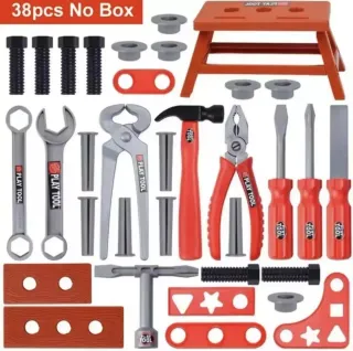 Set de herramientas de juguete con 38 piezas para horas de diversión. - Incluye banco de trabajo, martillo, llaves, destornilladores y más. - Piezas de plástico resistentes y seguras. - Ideal para fomentar la creatividad y el juego de roles.
