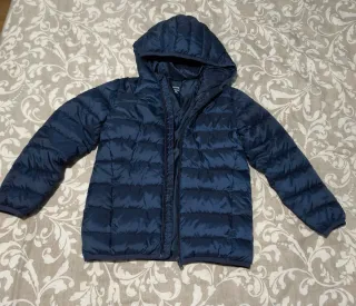 Abrigo acolchado azul para niño de la marca Kiabi. Es ligero y perfecto para el frío. Talla 8 años. - Cierre de cremallera. - Capucha. - Bolsillos laterales.