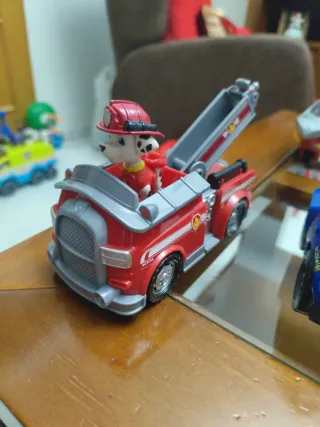 Camión de bomberos de la Patrulla Canina con figura de Marshall. - Diseño rojo y plateado. - Escalera extensible. - Figura de Marshall incluida.