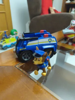 Coche de policía de la Patrulla Canina, personaje Chase. - Diseño azul con detalles blancos y rojos. - Figura de Chase incluida.