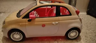 Coche descapotable para muñecas, perfecto para las aventuras de Barbie. Su diseño combina tonos rosa y beige, con un interior vibrante. - Interior en color rosa. - Detalles exteriores en beige y rosa. - Ruedas plateadas.