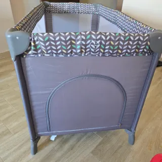 Práctica cuna de viaje, ideal para transportar y usar en cualquier lugar. Su diseño es moderno y funcional. - Laterales de malla transpirable. - Estructura resistente y segura. - Ruedas para facilitar el desplazamiento. - Diseño con estampado de hojas.