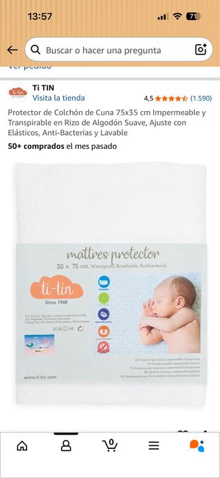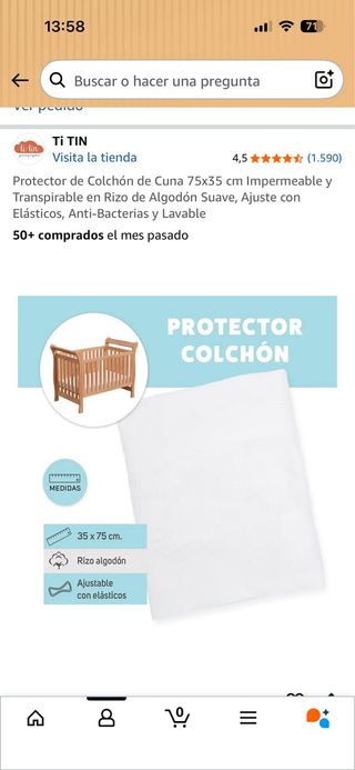 Protector de colchón para cuna o cochecito. - Medidas: 75x35 cm. - Impermeable y transpirable. - Tejido de rizo de algodón suave. - Ajuste con elásticos. - Antibacteriano y lavable. Usado solo 4 meses, nunca se mancho de pis.