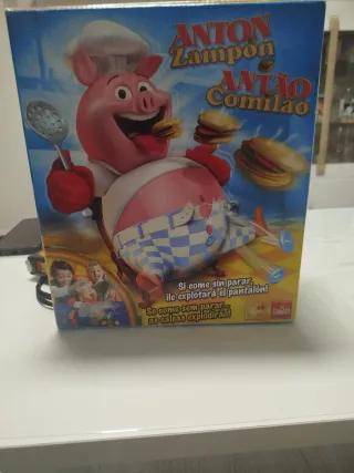 Divertido juego de mesa Anton Zampón, también conocido como Antão Comilão. ¡Pon a prueba tu habilidad para comer sin parar! - El cerdo chef se hincha a medida que comes. - ¡Cuidado! Si come demasiado, ¡sus pantalones explotarán! - Incluye juego de mesa y accesorios.