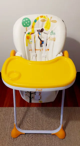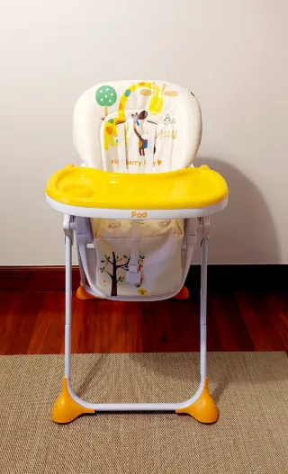 Trona infantil de la marca Star Ibaby con un divertido estampado. - Bandeja amarilla extraíble. - Cojín con estampado de jirafas y árboles con tejido buenísimo para limpiar. - 6 niveles de altura regulable. - Plegable. - Perfecto estado.