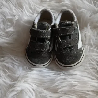 Zapatillas Vans para bebé en color gris. Cuentan con cierre de velcro para facilitar su puesta. - Diseño clásico de Vans. - Material exterior de ante y lona. - Suela de goma. - Forro interior textil. - Talla 17.