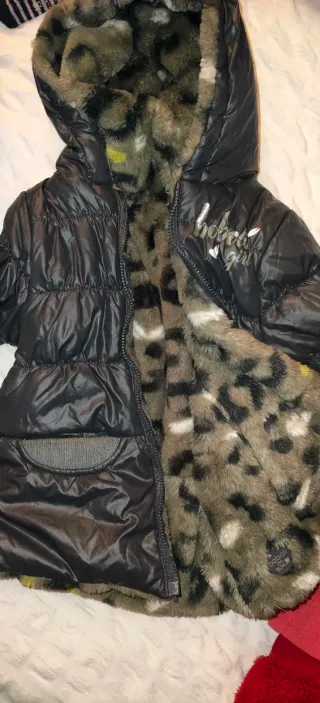 Chamarra reversible para niña de la marca Boboli. Un lado es liso y el otro tiene un estampado de animal print. - Diseño reversible. - Estampado animal print. - Capucha. - Cierre de cremallera.