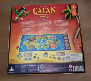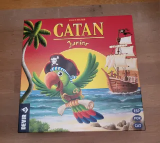Juego de mesa Catan Junior, perfecto para los más pequeños de la casa. Una versión pirata del clásico Catan. - Diseñado por Klaus Teuber. - Ilustraciones coloridas y temáticas de piratas. - Ideal para introducir a los niños en los juegos de estrategia. Se ha usado muy poco (2 ó 3 veces). Faltan 2 piezas: 1 de lana (oveja) y 1 sable, pero no interfieren en el desarrollo del juego.