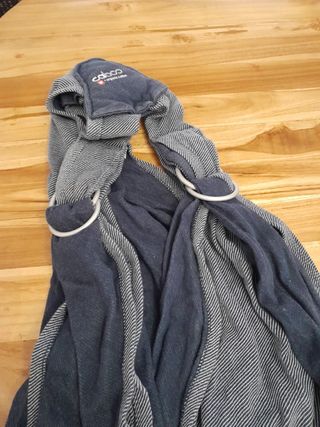 Fular de porteo de bebés, se le nota desgaste de los lavados, pero no tiene ningún roto ni nada, nos lo recomendó el fisioterapeuta, costó nuevo 80€, es buena marca, ideal para cólicos lactantes.