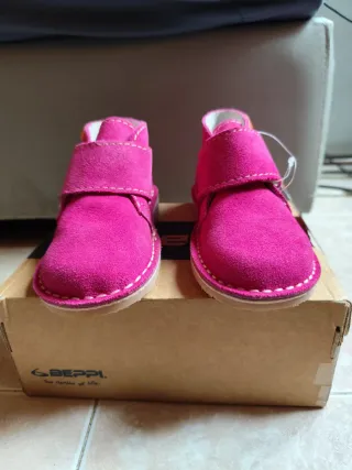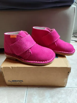 Botines para niña de la marca Beppi en color fucsia. - Cierre de velcro. - Material exterior piel de ante. - Suela de goma. - nuevos con etiqueta y si caja original. Número 26