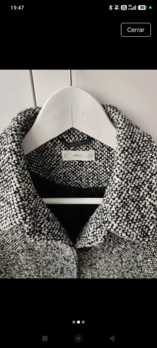 Abrigo de Mango para niña con un diseño tweed en tonos grises. Talla un poco grande. - Cierre de botones. - Cuello solapa. - Bolsillos delanteros.