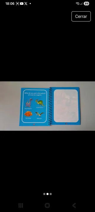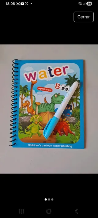 Libro de actividades para pintar con agua, ideal para niños. Incluye un bolígrafo recargable. - Diseño con dinosaurios y temática de dibujos animados. - Páginas reutilizables que se colorean al contacto con el agua. - Fomenta la creatividad y la motricidad fina.