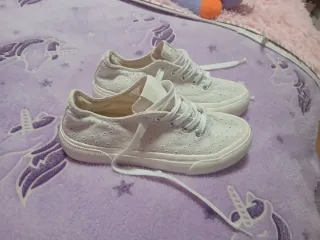 Bonitos tenis blancos para niña, talla 35. Perfectos para el día a día. - Diseño con bordado floral. - Cierre de cordones. - Suela de goma.