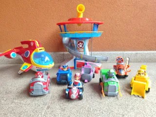 Set de juego de la Patrulla Canina con torre y varios vehículos. - Incluye la torre de vigilancia. - Varios vehículos de rescate. - Figuras de los cachorros. - En perfecto estado, sólo falta la perrita sky