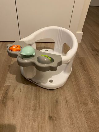 Proporciona soporte y seguridad al bebé durante el baño. Suele estar diseñado para bebés que pueden sentarse sin ayuda, generalmente a partir de los 6 meses de edad. Cuenta con ventosas antideslizantes para una mayor estabilidad en la bañera. El diseño es ergonómico e incluye orificios de drenaje.
