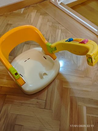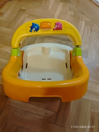 Asiento para el baño de bebé, en buen estado. Es perfecto para que los más pequeños disfruten de un baño seguro y cómodo. - Diseño ergonómico y ligero. - Material plástico resistente y fácil de limpiar. - Incluye juguetes integrados para entretener al bebé durante el baño.