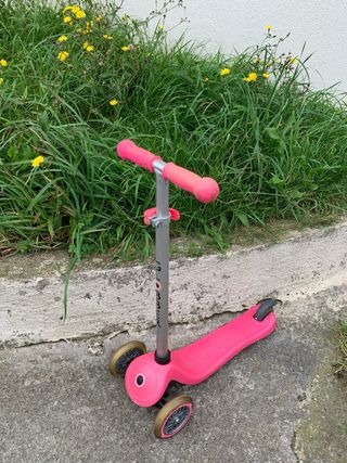 Patinete infantil de tres ruedas en color rosa. - Manillar ajustable. - Ruedas delanteras dobles para mayor estabilidad. - Plataforma antideslizante. - Desarrollo del equilibrio