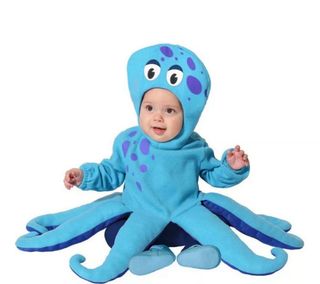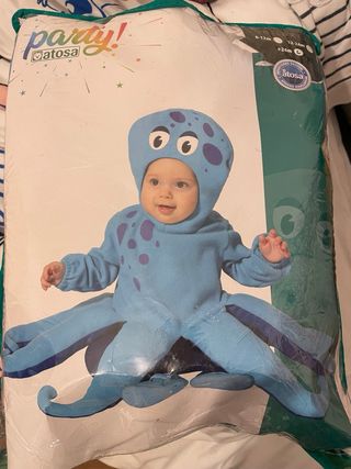 Divertido disfraz de pulpo para bebé, ideal para fiestas o para el carnaval. - Diseño de pulpo con tentáculos. - Talla para niñ@ de 2 años. - Color azul con detalles morados. - hicimos una pequeña abertura para que se puedan bajar la capucha en caso de que les moleste.