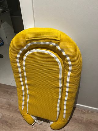 Nido para bebé de color amarillo con un diseño de tejido tipo gofre. Cuenta con un borde acolchado y cremalleras. - Tejido exterior tipo gofre. - Color amarillo vibrante. - Borde interior acolchado. - Cierre con cremallera. Tamaño XL