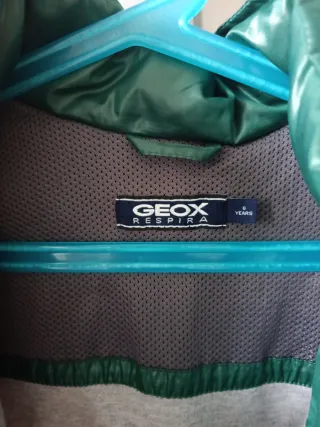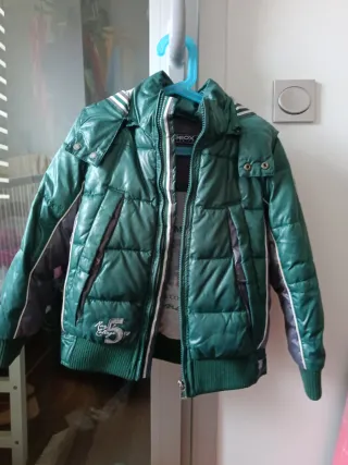 Anorak verde de la marca Geox para niño/a. - Talla 6 años. - Diseño acolchado. - Cierre de cremallera.