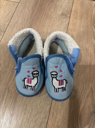 Bonitas zapatillas para niña con un divertido diseño de llamas. Talla 24. Color azul. Forro interior suave. Muy poco uso, prácticamente nuevas. Una de las zapatillas tiene unas manchas en la puntera.