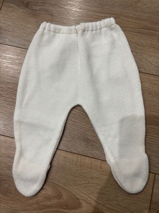 Pantalón de bebé de punto en color blanco. Talla 1 mes. Tejido suave y elástico. Diseño con pies incorporados.