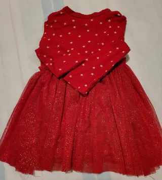 Vestido body para bebé de manga larga, ideal para los más pequeños. - Color rojo vibrante. - Estampado de estrellas doradas. - Adorno de osito con lazo. - Falda de tul brillante.