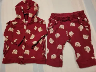 Conjunto de chándal para bebé con estampado de ositos. - Sudadera con capucha y cremallera. Dos bolsillos. - Pantalón con cintura elástica y detalle de lazo. - Diseño en color granate con ositos. - Talla 1 mes.