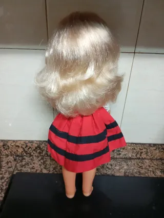 Muñeca Nancy Pecosa de los años 80. - Vestido blanco con mangas abullonadas. - Falda roja con rayas negras.