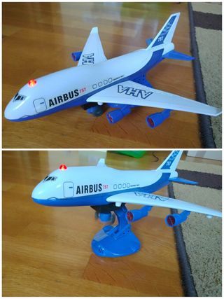 Avión Airbus 757 AHA con Luz, Sonidos Movimientos y función de Aterrizaje y Despegue. Botón ON/OFF. 2 Pilas AA,Incluidas. Avión con ruedas giratorias 360 grados,anda solo y va haciendo giros. Si choca con algún objetivo cambiará de posición y seguirá moviéndose. Tiene la función de Aterrizaje y Despegue.El avión se para y se Eleva para hacer el Despegue y vuelve a Bajar simulando Aterrizaje. Con Luz Intermitente en la parte superior de la cabina y Sonidos continuos muy reales en los movimientos,despegue y aterrizaje. Medidas 28×28×11cm. Material ABS resistente. Está en perfecto estado. Como Nuevo. Hago envíos y Entrega en mano en Coruña.