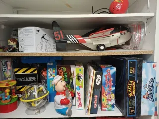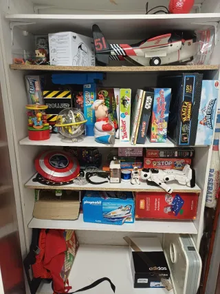 Se vende lote variado de juegos de mesa y juguetes. A 5€ cada juego o precio a negociar si cojes varios! - Incluye juegos como Twister, Stop, Detective Kit, Superbingo Automático, ... - Avión de juguete con mini avioncitos de metal. - Juegos de Star Wars - Escudo del Capitán América. - Otros juguetes infantiles.
