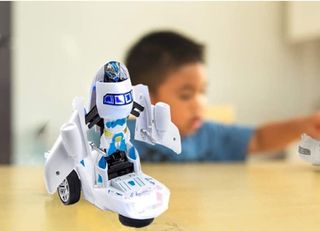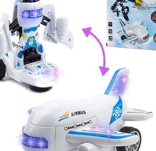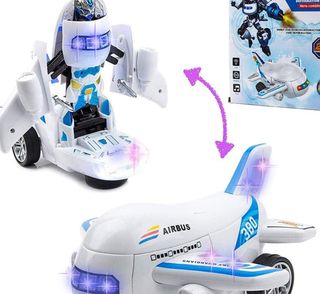 Los juguetes transformables son muy llamativos entre el público infantil. Presentamos un avión que se convierte en robot. , Mientras va haciendo el cambio se va moviendo, al tiempo que emite luces de colores y sonido. , Tiene además la función de "salva obstáculos" es decir, si choca con algo se da media vuelta y sigue su camino hacia otro lado. Funciona con 3 pilas AA (no incluidas). , Modelo: Item No. 27168.