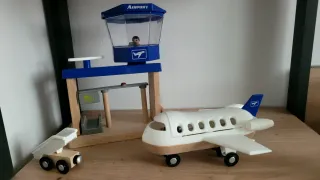 Conjunto de aeropuerto de juguete para niños, ideal para horas de diversión. - Incluye torre de control con figura. - Avión de juguete blanco con detalles azules. - Escaleras de acceso. - Piloto extraible. Una de las piezas tiene una pequeña tara, que no influye en su montaje ni en su funcionamiento. De ahí su precio.